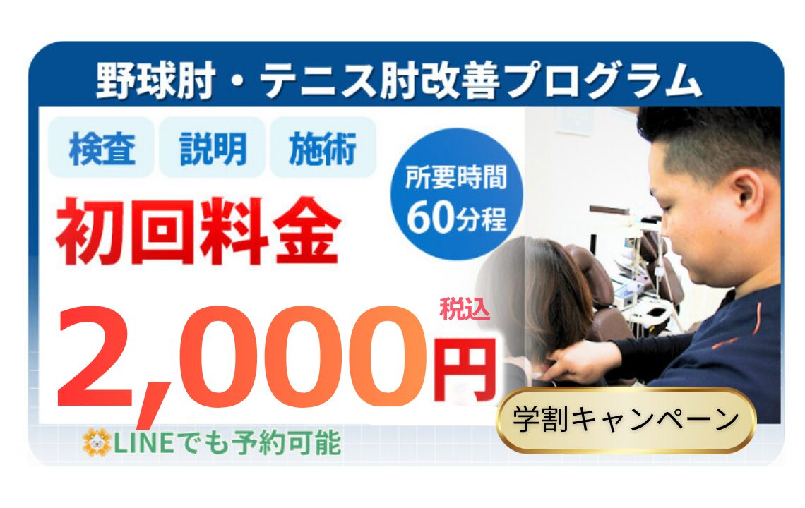 肘の状態で全く違いますが初期段階だと3回ほどで改善します。 ※効果には個人差があります
