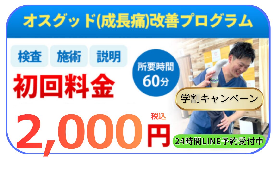 正式名称はオスグッド・シュラッター病といい、成長期特有の怪我・障害です。